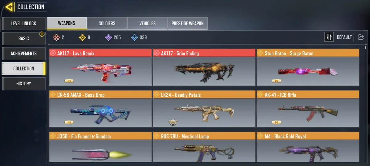 تعداد اسلحههای مکس شده (Maxed Weapons):0